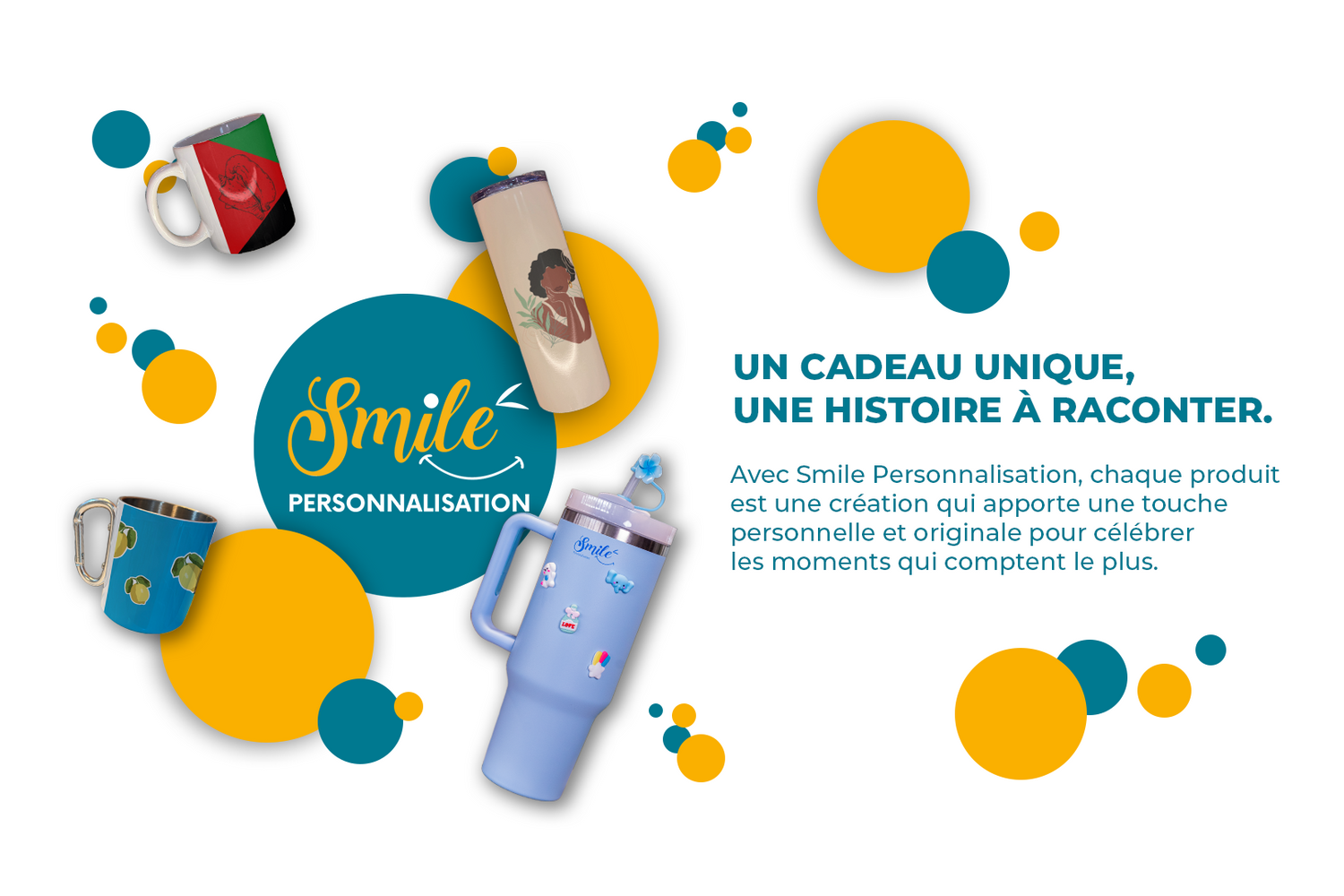 Chez Smile Personnalisation, chaque objet raconte une histoire. En transformant des articles du quotidien en créations uniques, nous offrons bien plus qu’un produit : nous créons des souvenirs durables, parfaits pour célébrer les moments qui comptent et tisser des liens inoubliables avec vos proches.